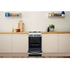 Características de esta cocina de libre instalación 50x60 Indesit: 4 quemadores de gas. Color Inox. Suministro de energía de gas 50cm de ancho