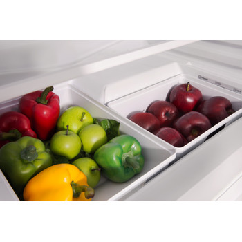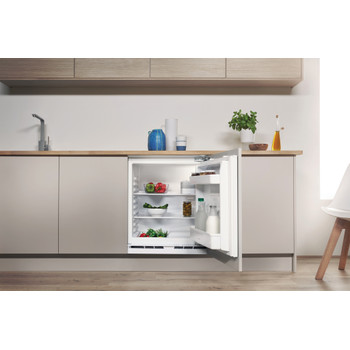 Características de este frigorífico integrado Indesit: debajo del frigorífico. Balcón exclusivo para botellas.