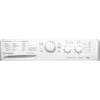 Características de esta lavadora de carga frontal de libre instalación Indesit: una amplia capacidad de 9,0 kg. Una velocidad de centrifugado de 1000 revoluciones por minuto, rápida y eficiente en recursos. Color blanco.