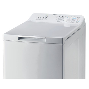 Características de esta lavadora de carga superior de libre instalación Indesit: nuestro electrodoméstico delgado es la solución perfecta para un lugar pequeño. Una amplia capacidad de 6,0 kg. Una velocidad de centrifugado de 1000 revoluciones por minuto, rápida y eficiente en recursos. Color blanco.