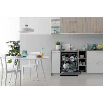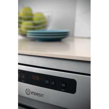 Características de este lavavajillas Indesit: lavavajillas de tamaño completo con una excelente cantidad espacio disponible para colocar los cubiertos Clase de eficiencia energética D. Excepcional, consumo reducido de agua. Color Inox. Tecnología innovadora que garantiza un rendimiento extra silencioso, para un electrodoméstico muy silencioso.
