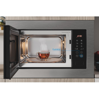 Una pantalla LCD combinada con una interfaz de usuario empotrada con sensores táctiles, para interactuar fácilmente con el microondas con una sensación perfecta.